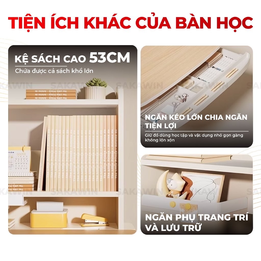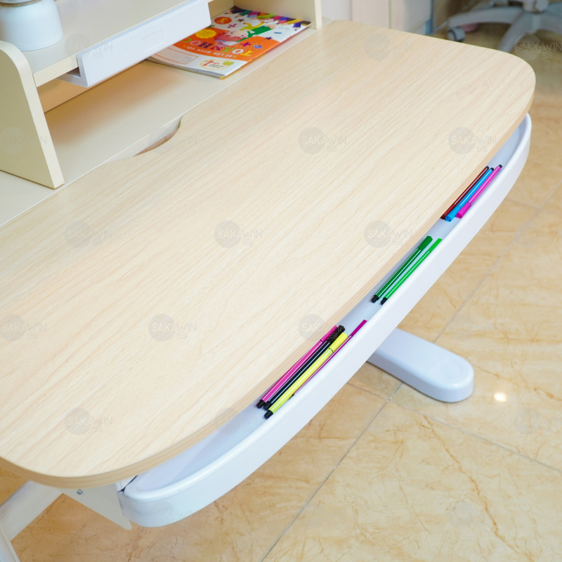 – Ngăn bàn rộng giúp bé ngăn nắp gọn gàng đồ dùng học tập.