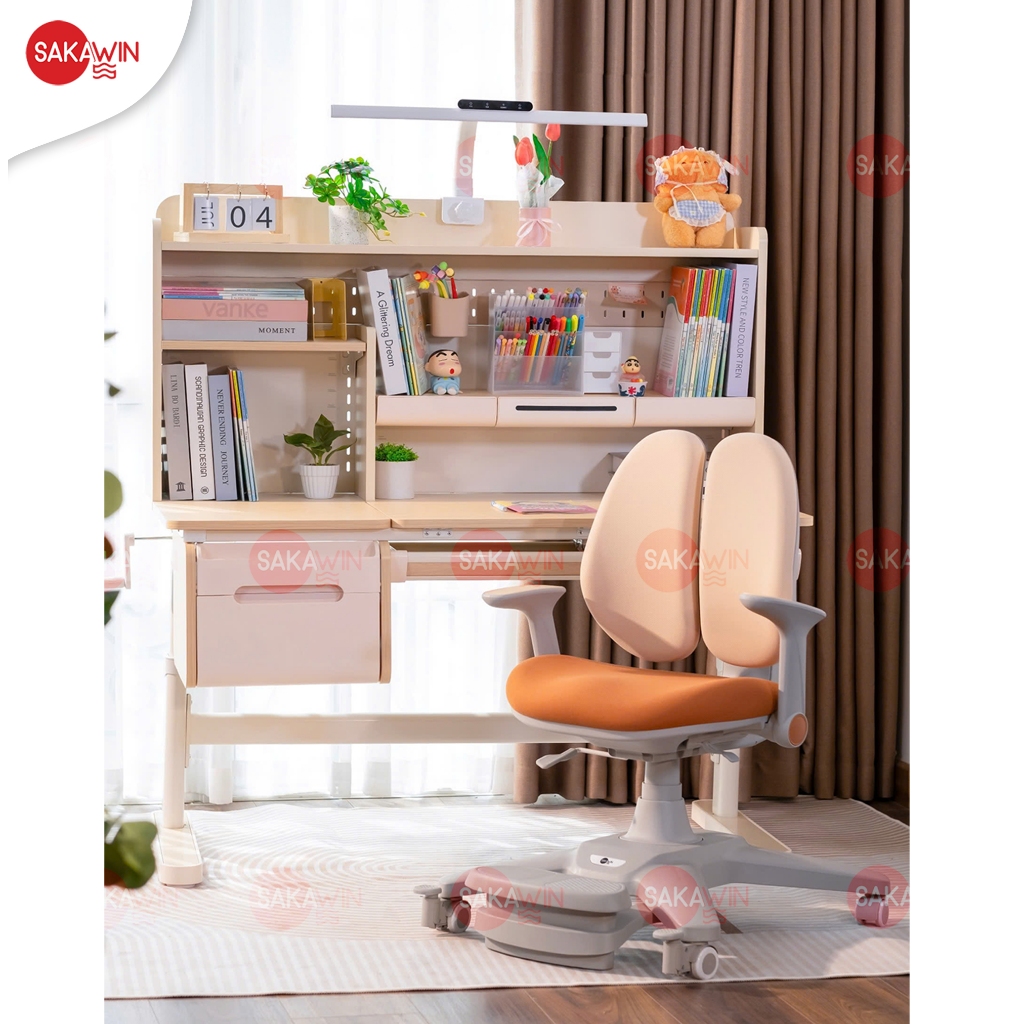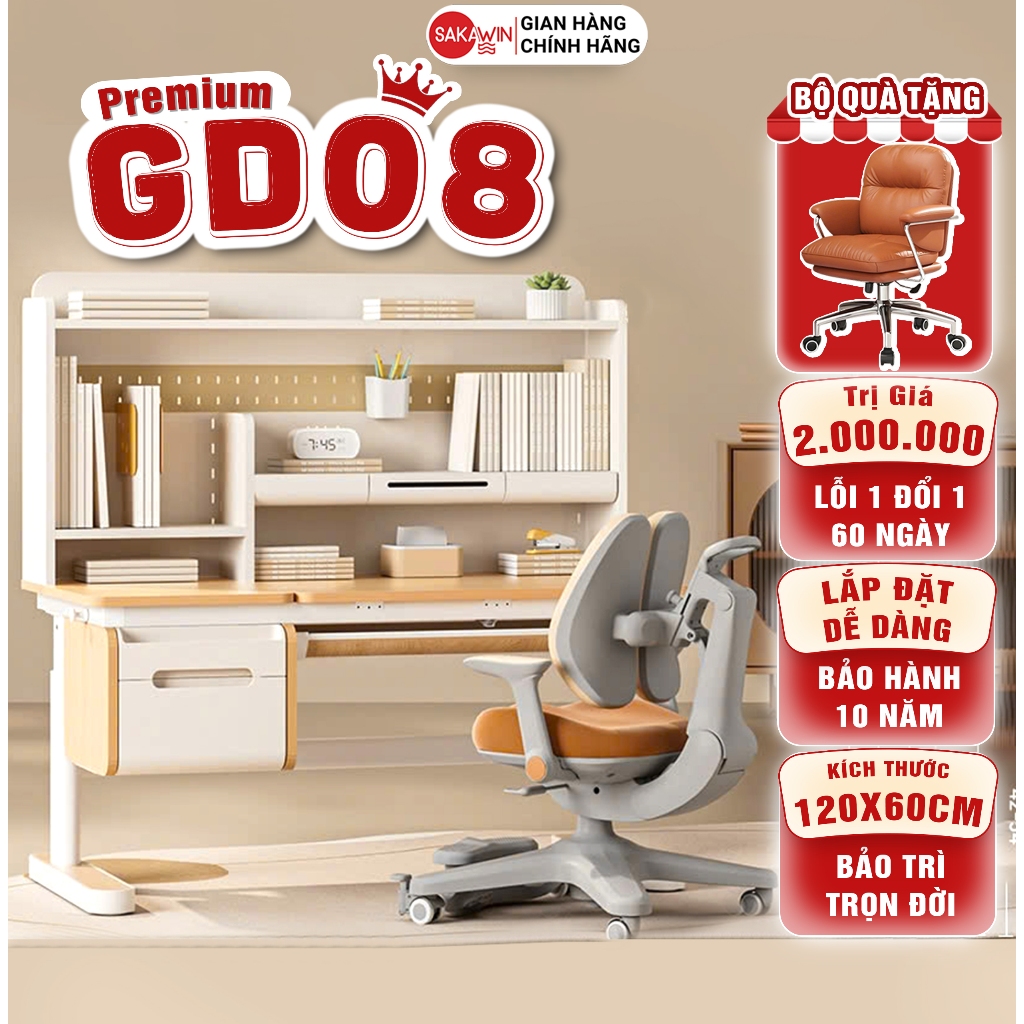 Tên sản phẩm: Bộ bàn học thông minh cao cấp Sakawin Premium GD08 có không gian lưu trữ lớn, nâng hạ bằng tay quay