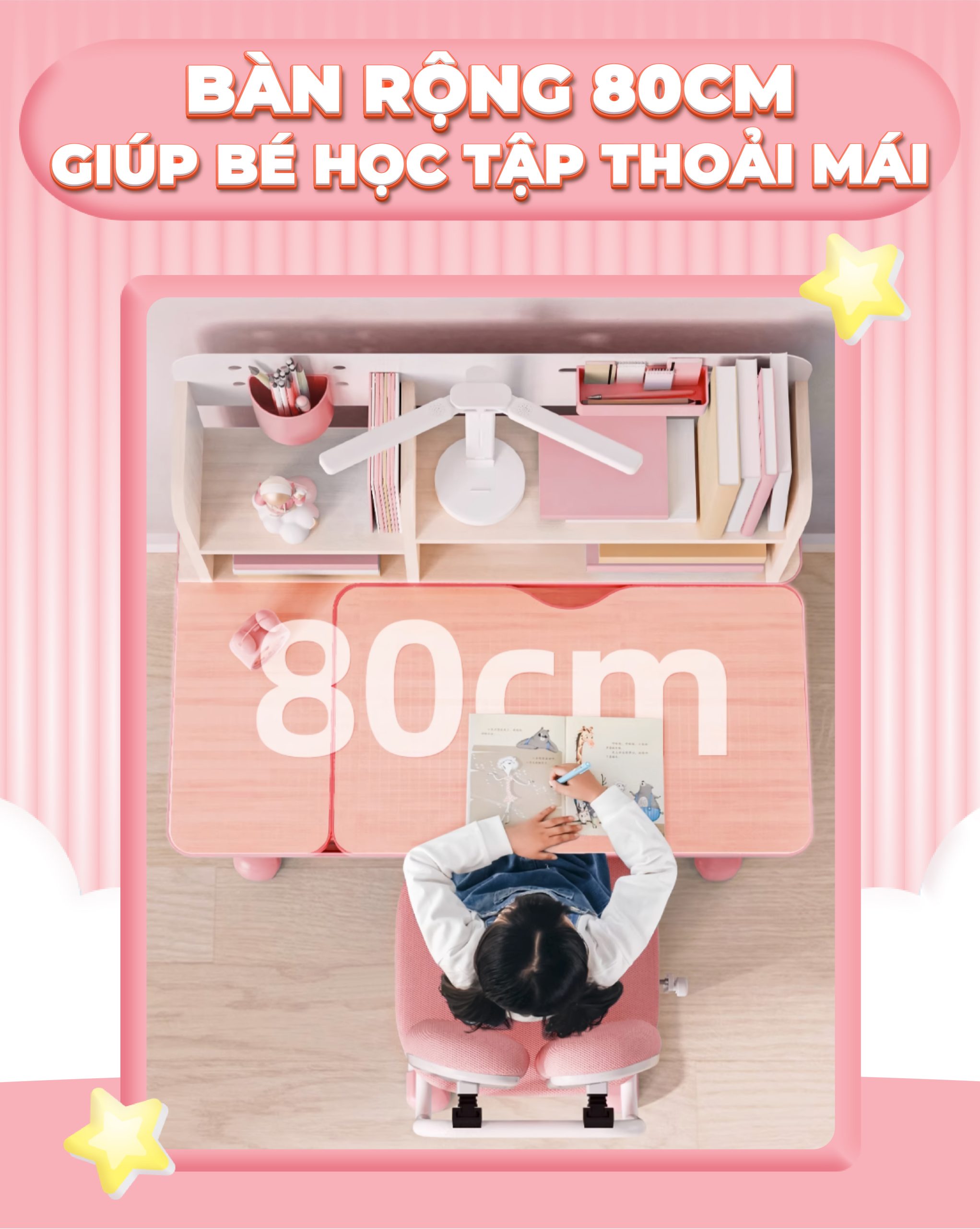 – Ngăn bàn rộng giúp bé ngăn nắp gọn gàng đồ dùng học tập.